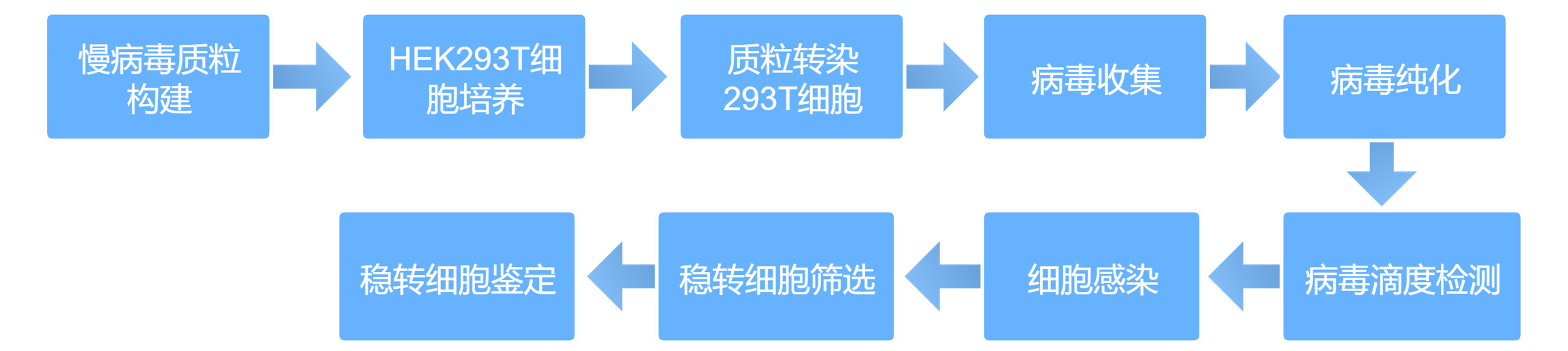 细胞感染:在病毒感染前一天对细胞进行计数,接种约10000个细胞于12孔板中,培养过夜后使用无血清培养基稀释病毒,加入12孔板中对细胞进行感染,病毒数量根据推荐细胞的感染MOI加入(若无推荐MOI,需做病毒梯度:1,5,10,50,1005个梯度对细胞感染),感染6h后去除含病毒溶液,加入完全培养基细胞培养,培养48h后,在荧光显微镜下观察细胞荧光强度。同时加入puromycin对细胞筛选,筛选约2周时间。细胞筛选好后,使用定量PCR和Westernblot检测目的基因的稳定表达情况。