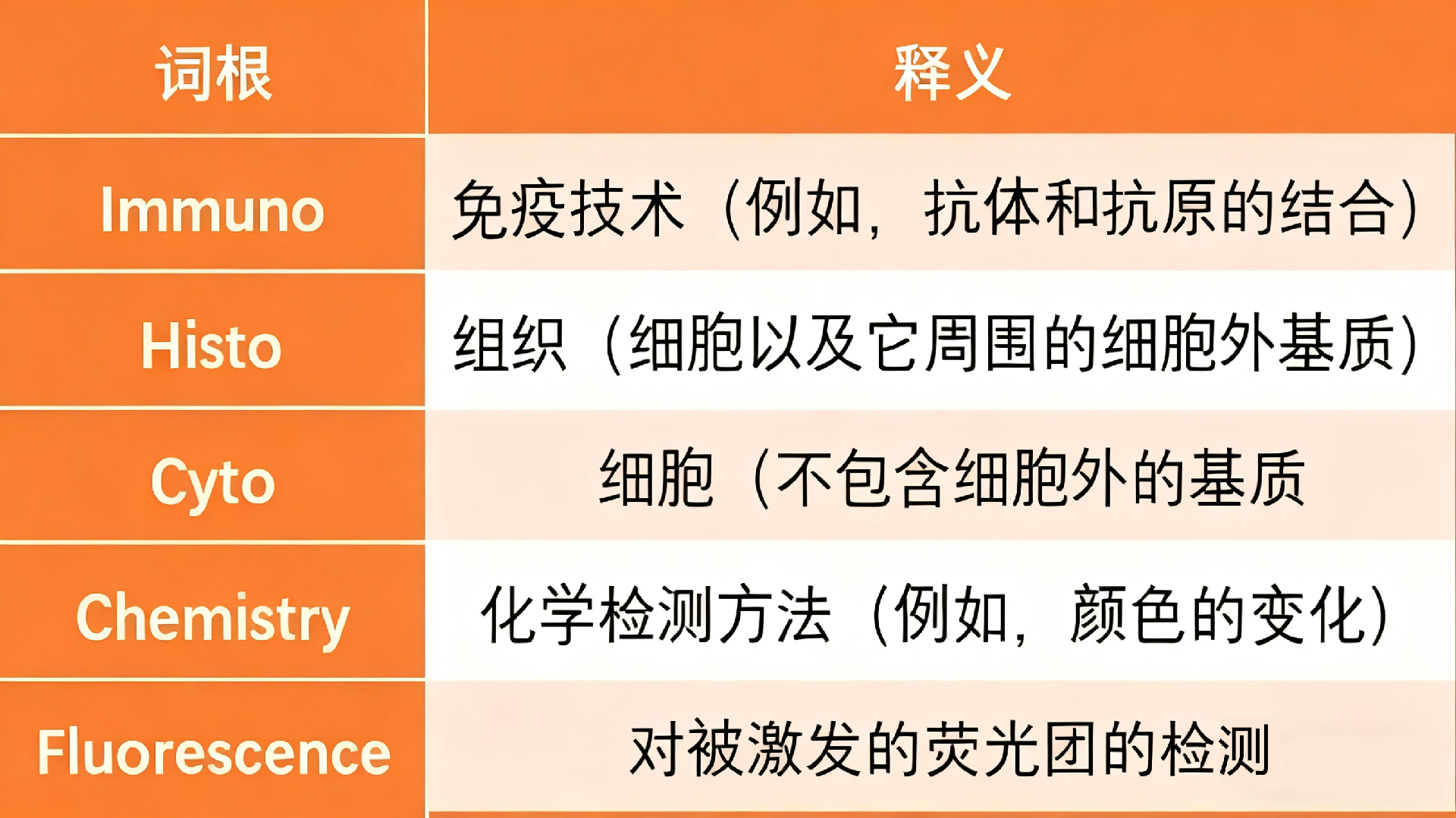 作者:超级管理员时间:2025-11-02因为原理相似,实验新手在面对IF、ICC、IHC、mIHC这几种技术时总是傻傻分不清!如何区分IF、ICC、IHC、mIHC可以根据英文词根进行名词的分析就比较好理解了免疫组织化学:Immunohistochemistry (IHC);免疫细胞化学:Immunocytochemistry (ICC) ;免疫荧光:Immunofluorescence (IF);多重免疫组化:Multiplex immunohistoch