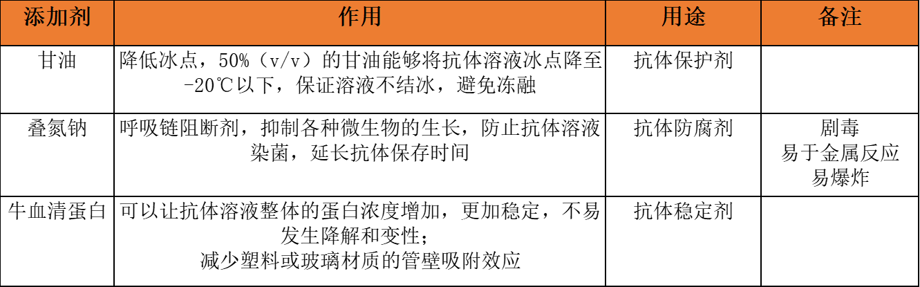 抗体的储存需要稳定的环境,因此我们可以在抗体溶液中加入不同的添加剂以稳定抗体溶液性质。