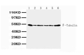 Tubulin分为α、β、γ、δ、ε等多种tubulin,其中α-Tubulin和β-Tubulin可以形成异源二聚体,是形成微管的最主要的两种Tubulin。α-tubulin和β-tubulin实际检测条带均在55kDa左右。