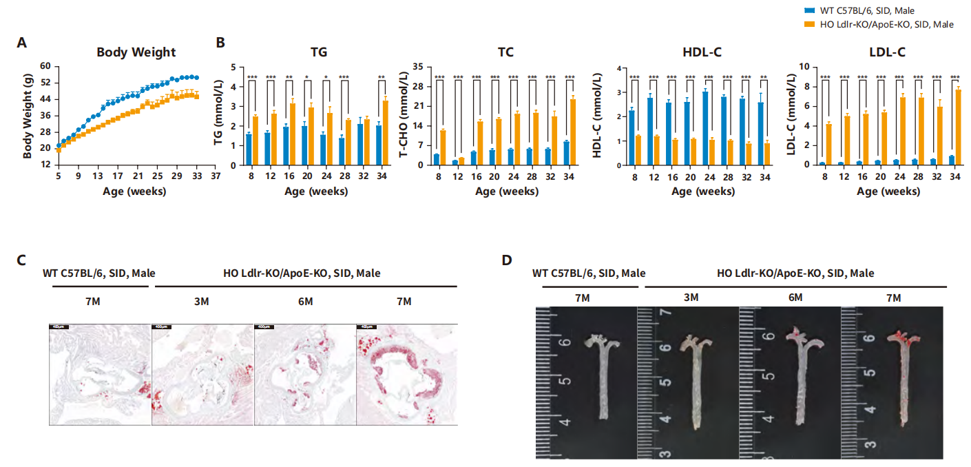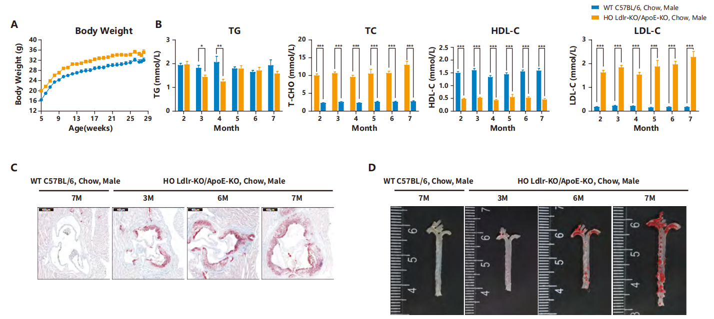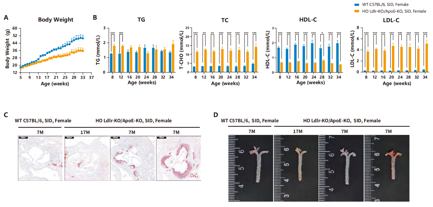 我们建立了动脉粥样硬化小鼠模型,为深入探究动脉粥样硬化的发病机理、药物筛选以及评估药物疗效提供了强有力的工具。部分验证数据如下: