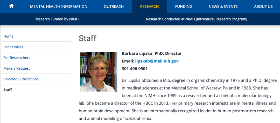 作为一名神经科学家和美国国家精神卫生研究所(NIMH )人类大脑收集中心主任,利普斯卡博士以研究精神疾病患者的大脑为生。可以说,没有谁会比她更了解精神分裂症了。