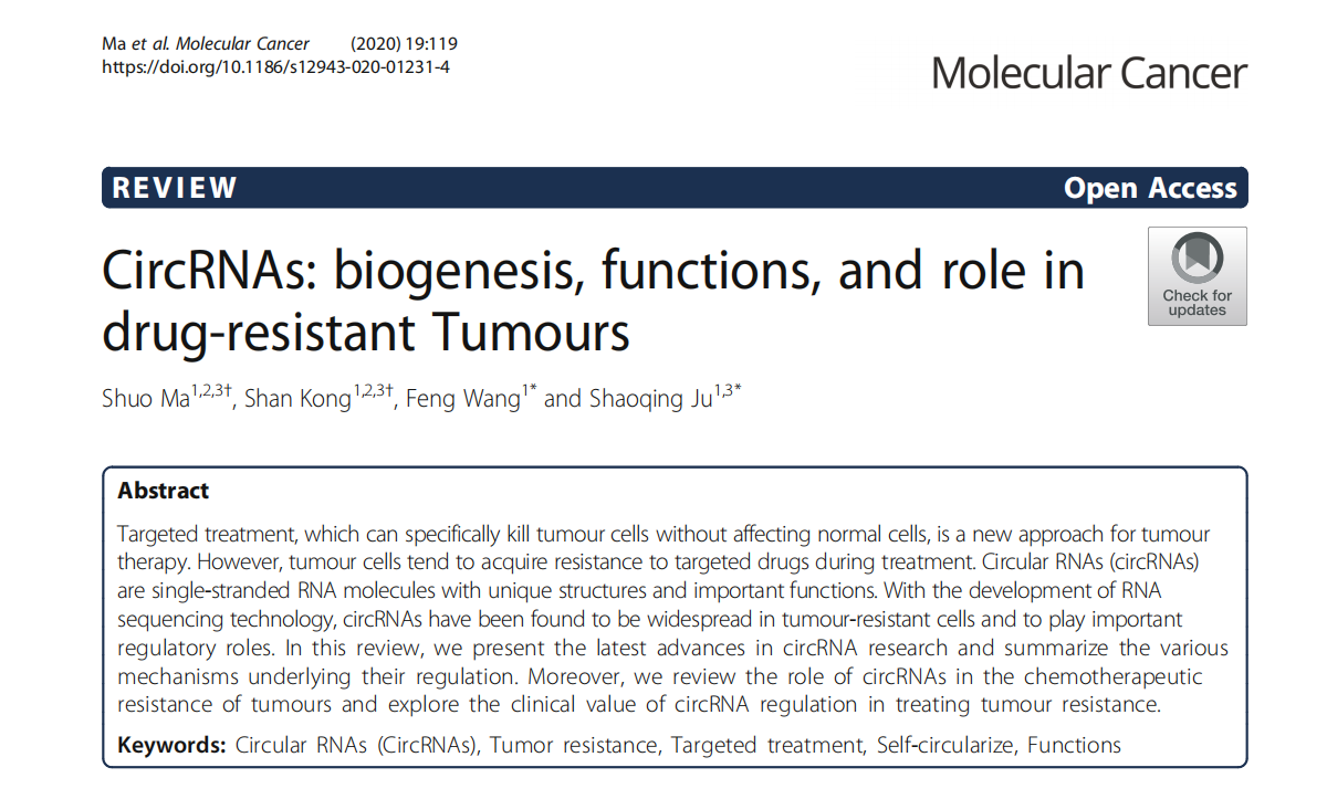 CircRNAs:在耐药肿瘤中的生物发生、功能和作用