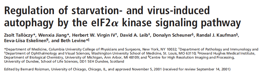 通过eIF2α激酶信号通路调节饥饿和病毒诱导的自噬