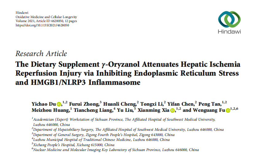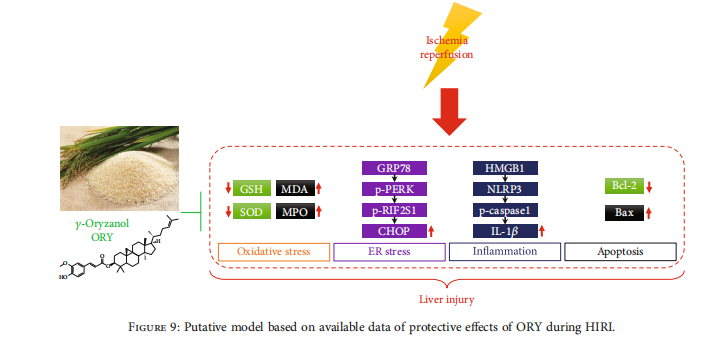 近年来,越来越多的注意力集中在利用食物成分中的生物活性成分预防肝病。γ-谷维素(ORY,见图一)是从米糠油中分离出的一种必不可少的生物活性成分。目前,ORY已被证明通过发挥维持代谢稳态、抗炎、抗肿瘤、抗氧化等作用在多种肝病模型中发挥保护作用。然而,尚不清楚其对ER应激和HMGB1/NLRP3介导的炎性反应的影响。因此,使用口服ORY补充剂作为HIRI病的预防药物,并在本研究中探索了潜在的分子机制。