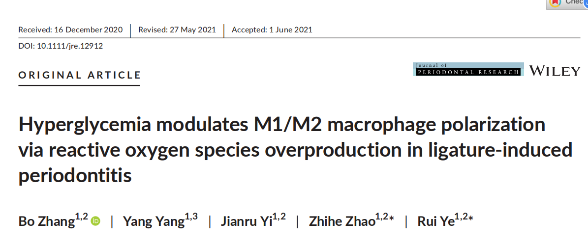 本研究结果表明,高血糖可以通过在炎症条件下过度产生ROS将巨噬细胞极化为M1巨噬细胞,这可能是糖尿病条件下牙周炎牙周损伤加重的原因。通过ROS清除剂抑制M1巨噬细胞和恢复M2巨噬细胞有望成为糖尿病牙周炎的潜在辅助治疗策略。