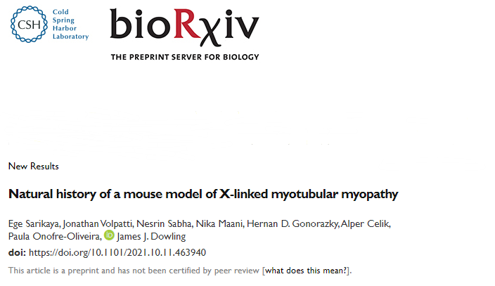 通过在该疾病的小鼠模型中进行实验,已经发现了有关XLMTM的大部分知识。该模型首先由Buj-Bello和Laporte生成,具有靶向缺失鼠Mtm1的外显子4 ,其结果是移码、RNA表达减少和蛋白质表达缺失(即基因敲除或KO模型)。还建立了其他动物模型,包括斑马鱼和犬类模型,在MTM1基因中包含突变。