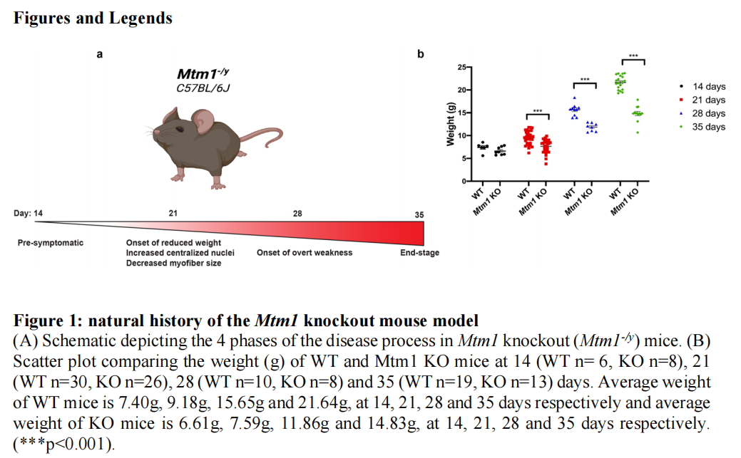 X连锁肌管肌病(或XLMTM)是一种单基因肌肉疾病,在婴儿期发病,以新生儿肌张力低下和严重虚弱为特征。25-50%的受影响患者在生命的第一年死亡,而幸存下来的患者高度依赖技术(80%需要轮椅、呼吸机和饲管支持)并且寿命缩短。XLMTM具有单一的遗传原因,即肌管蛋白(或MTM1)的突变。MTM1中的突变都被认为会导致表达丧失和/或功能丧失。