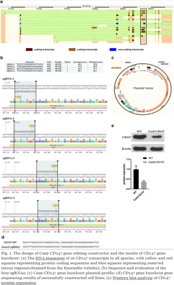 在这项研究中,评估了CD147基因对肿瘤侵袭和转移的影响。总体策略是使用CRISPR/Cas9基因编辑工具禁用cal27细胞中的CD147基因。体外评价CD147基因敲除对细胞转移侵袭能力的影响。体内免疫组化结果揭示了cal27异种移植瘤在裸鼠体内的生长能力。这些结果表明成功构建了CD147基因敲除细胞,重要的是,CD147敲除在体外和体内降低了cal27肿瘤细胞的侵袭和转移(方案1)。