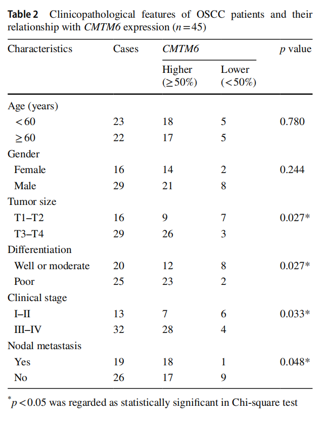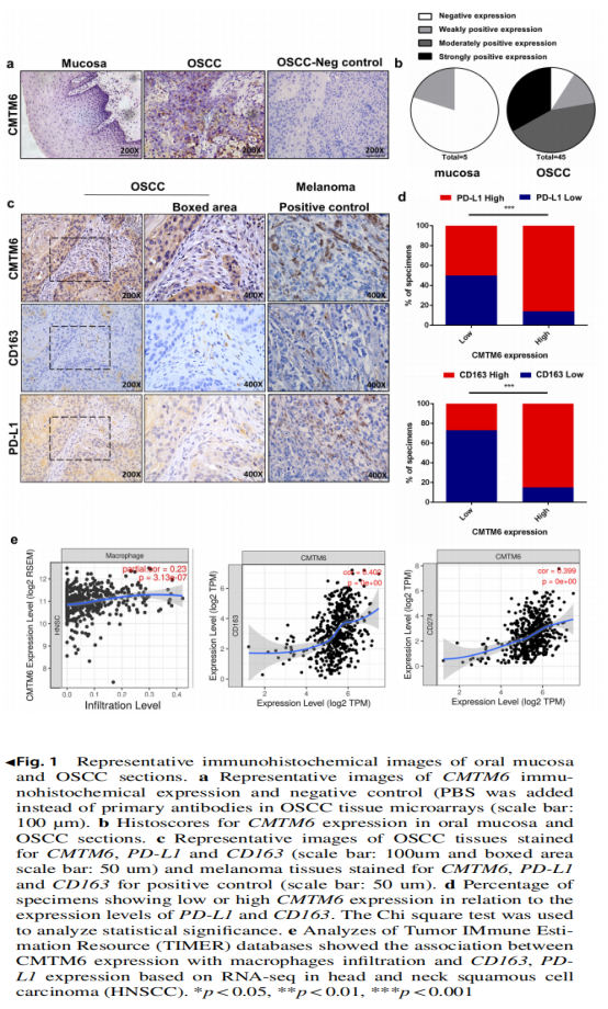 CKLF样MARVEL含跨膜结构域6(CMTM6)是各种癌症中肿瘤免疫学的关键调节剂。然而,CMTM6在口腔鳞状细胞癌(OSCC)进展中的作用和潜在分子机制仍不清楚。