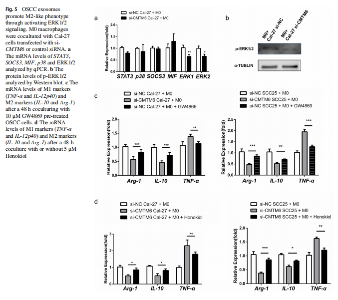 OSCC细胞分泌的外泌体CMTM6通过ERK1/2信号通路诱导M2样巨噬细胞极化