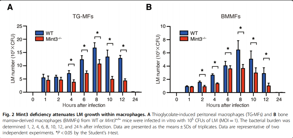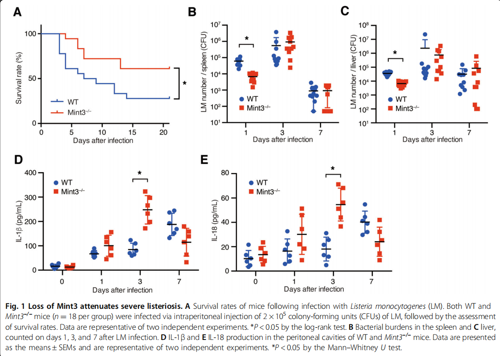 总之,巨噬细胞表达的Mint3会导致严重的李斯特菌病。因此,抑制Mint3可以作为一种策略,通过促进细胞焦亡来预防LM感染和严重李斯特菌病的传播。
