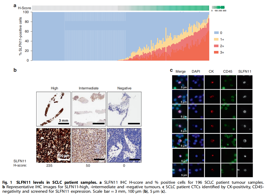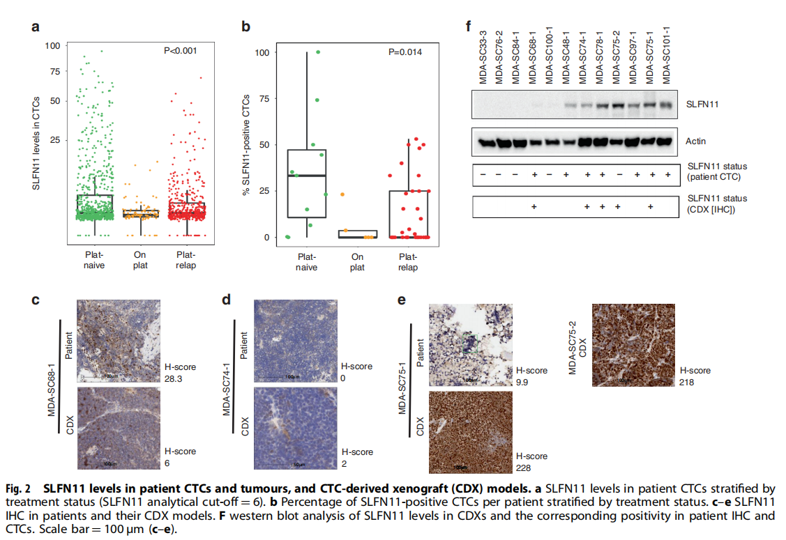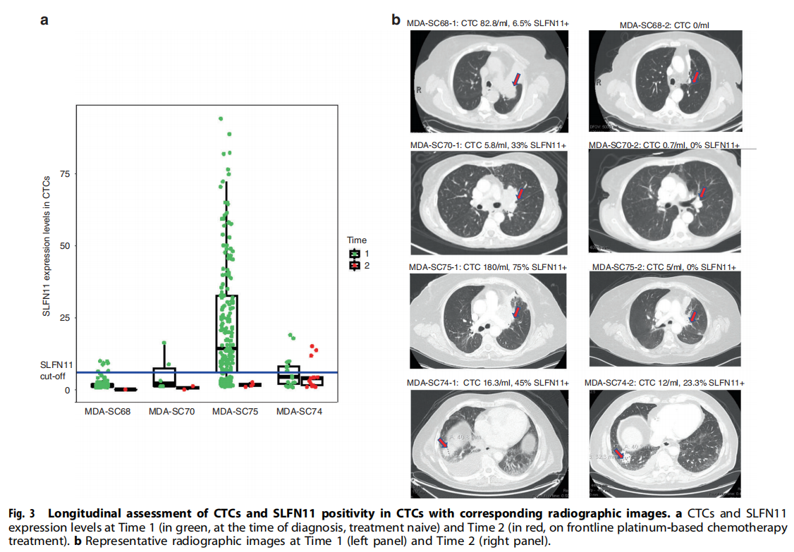 可以使用非侵入性液体活检在来自SCLC患者的CTC中监测SLFN11水平。在SCLC患者的CTC中检测SLFN11的能力为检测和纵向监测这种有前途的生物标志物增加了一个有价值的工具。