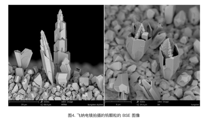 SE 图像可以提供更丰富的表面信息——如图3 所示。在许多显微镜中,X 射线检测也被广泛用于进行样品的元素分析,这种射线产生于电子与样品的相互作用。每种元素产生的 X 射线都有特定的能量,X 射线就相当于元素的指纹。因此,通过检测未知组分的某样品出射的 X 射线的能量,就可以确定该样品所包含的各种不同元素。