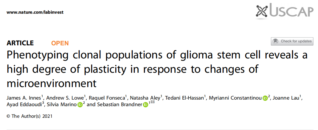 作者:超级管理员时间:2022-03-30摘要:胶质瘤起始细胞(GIC)的表型受细胞内在和细胞外部因素的调节。GIC的表型异质性和可塑性是对靶向癌症干细胞的治疗方法的一个重要限制。可塑性也对纯化的癌症干细胞的鉴定、分离和繁殖提出了挑战。在这里,作者使用GIC的条形码标记方法在数代中产生克隆群体,并结合已建立的干细胞标记CD133、CD15、CD44和A2B5进行表型