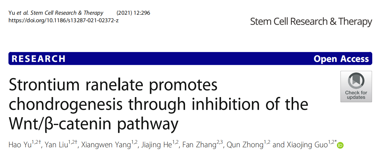 作者:超级管理员时间:2022-01-26背景软骨再生是颞下颌关节骨关节炎(TMJ-OA)功能重建的关键步骤,但却是一个难以解决的问题。雷奈酸锶(SrR)是一种抗骨质疏松药物,近年来已被证明可影响OA,但其对软骨形成的影响及其潜在机制仍不清楚。方法与结果本实验外包通过来自Sprague-Dawley(SD)大鼠的骨间充质干细胞(BMSCs)在含有或不含SrR、XAV-939和LiCl的软骨形