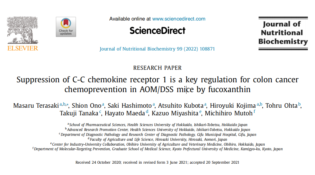 作者:超级管理员时间:2022-02-10摘要:岩藻黄质(Fx)在致癌鼠偶氮甲烷/葡聚糖硫酸钠(AOM/DSS)模型中显示出潜在的癌症化学预防功能。然而,基于体内转录组谱的分子机制仍然知之甚少。我们研究了从AOM/DSS小鼠获得的结肠直肠黏膜组织中癌症相关蛋白的转录组的Fx依赖性改变,无论是否经过Fx治疗。Fx给药(50mg/kg体重14周)显着预防了AOM/DSS小鼠结直肠腺癌的发