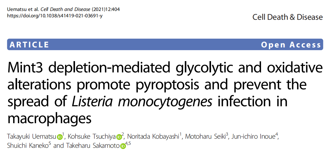 作者:超级管理员时间:2022-02-18摘要:单核增生李斯特菌(LM)感染通过炎症小体激活诱导宿主巨噬细胞的焦亡,这是一种调节坏死的形式。在这里,我们研究了Mint3在巨噬细胞中的作用,在LM感染后的焦亡启动过程中,它通过缺氧诱导因子-1的激活来促进糖酵解。我们的结果显示,mint3缺陷小鼠比野生型(WT)小鼠对致命的李斯特菌病更有抵抗力。此外,在LM感染期间,