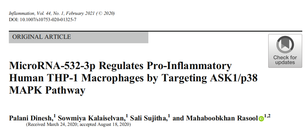 作者:超级管理员时间:2022-01-14介绍炎症是一个复杂的生物过程,它会改变免疫系统的正常生理功能,导致微环境异常,从而导致多种临床并发症。炎症过程是通过细胞内的各种细胞内信号因子介导的。细胞凋亡信号调节激酶1(ASK1)是一种炎症衍生的激酶,可控制其他激酶家族的激活,例如p38丝裂原活化蛋白激酶(p38MAPK),其介导各种炎症过程。本研究的重点