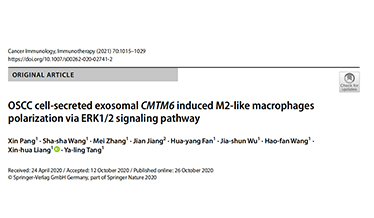 作者:超级管理员时间:2021-11-16背景CKLF样MARVEL含跨膜结构域6(CMTM6)是各种癌症中肿瘤免疫学的关键调节剂。然而,CMTM6在口腔鳞状细胞癌(OSCC)进展中的作用和潜在分子机制仍不清楚。方法与结果在OSCC样本中,CMTM6表达与OSCC患者的CD163+巨噬细胞浸润和临床特征呈正相关(见表一、表二、图一);OSCC细胞中的CMTM6敲低通过PD-L1下调减缓OSCC癌症进展(见